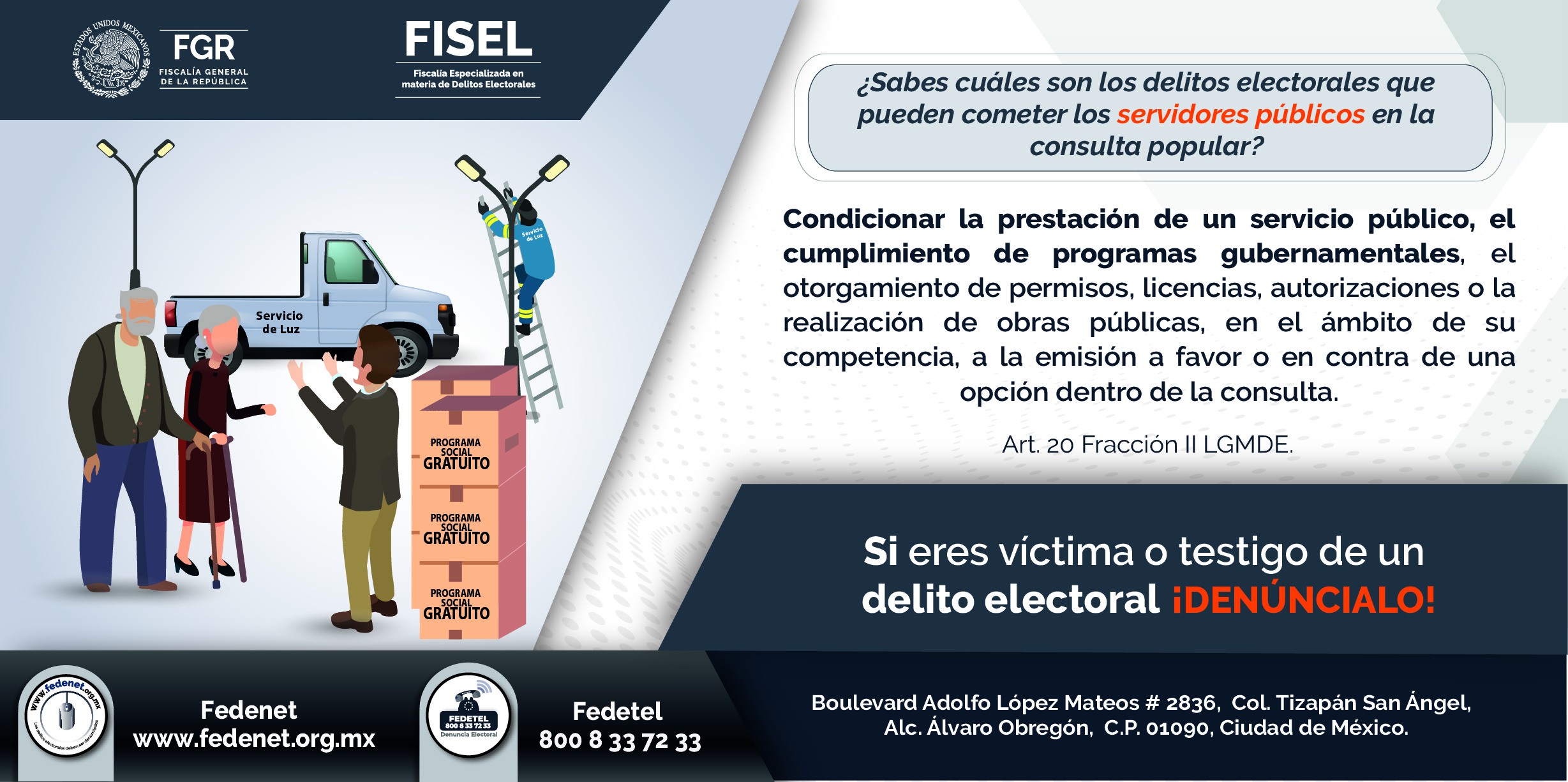 Así también, se anexa flyer y dos infografías con información referente a la consulta popular y a los delitos electorales susceptibles de ser cometidos por servidores públicos, debiendo realizar su distribución y difusión a partir del día 15 de julio y hasta el día 28 de julio del presente año 2021.